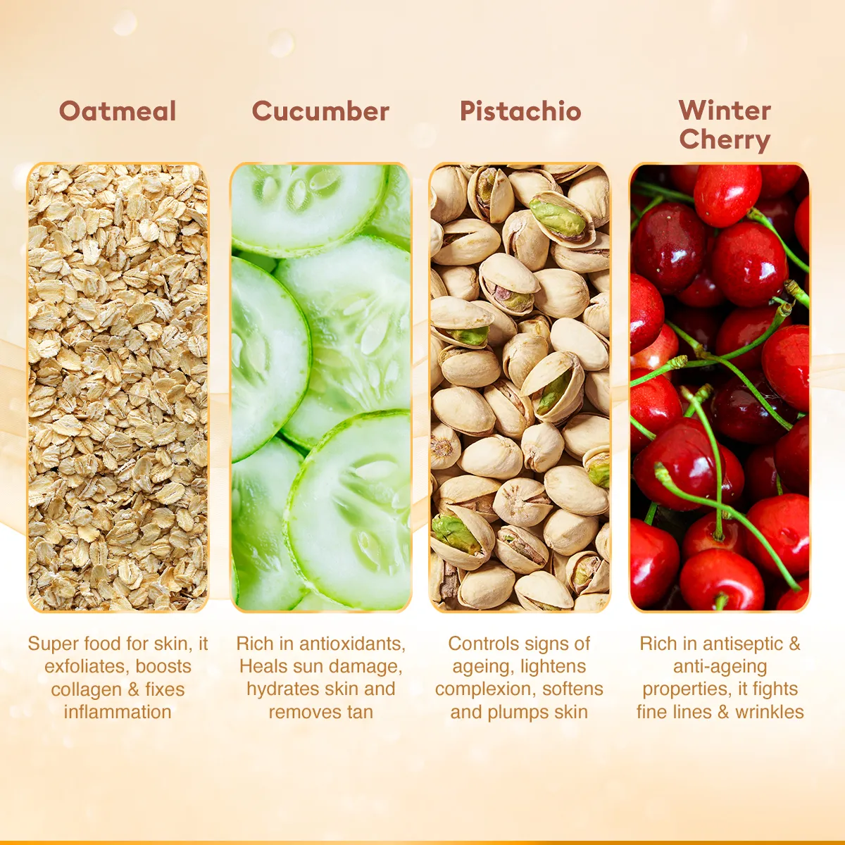 Apply it on the face and neck, massage in upward and outward small circular strokes for 2-3 minutes and wipe off with moist cotton. Pay special attention to the corners of your nose, hairline, chin and neck.