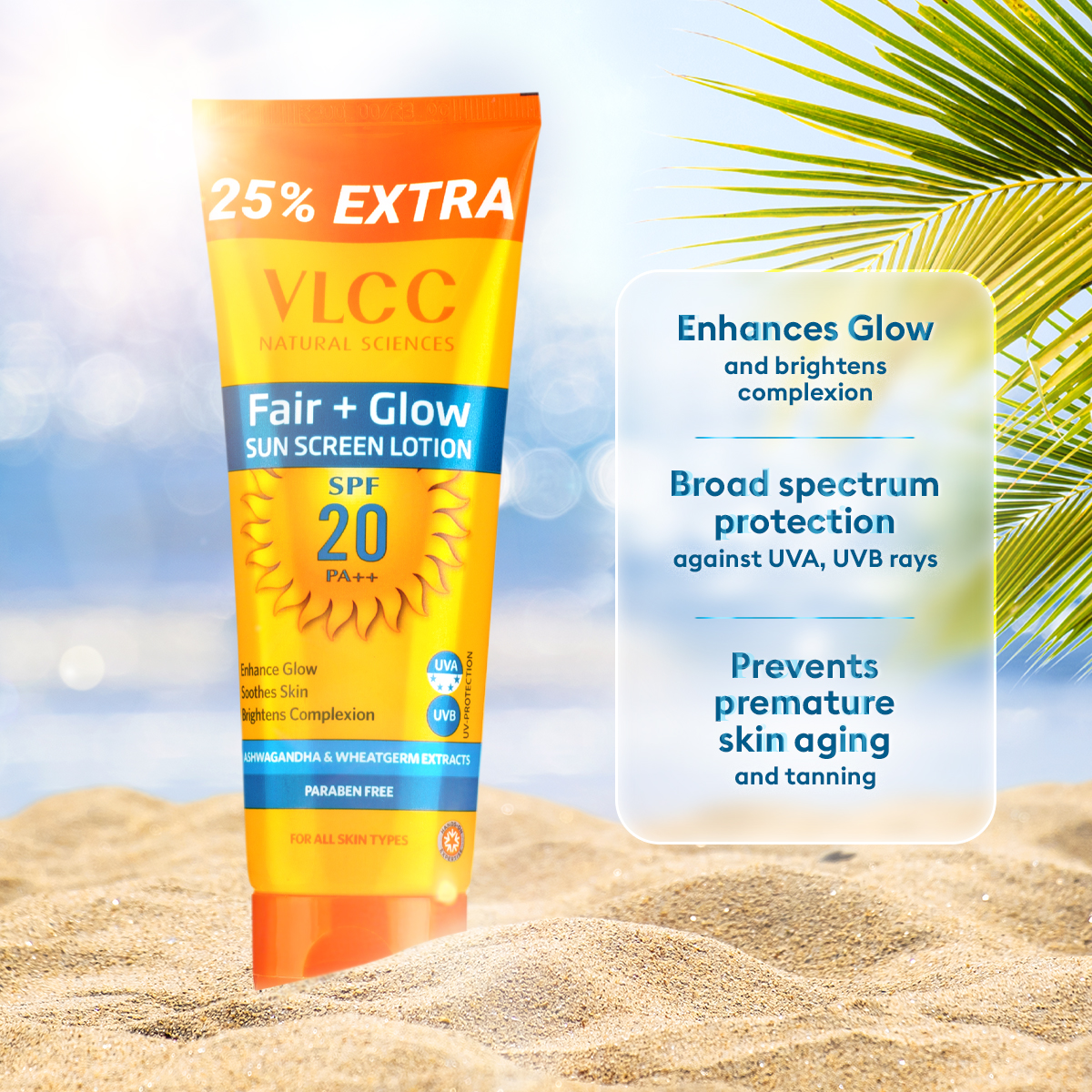 Features of Fair+ Glow Sunscreen Lotion SPF 20 PA ++ -100 g with 25 g Extra