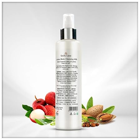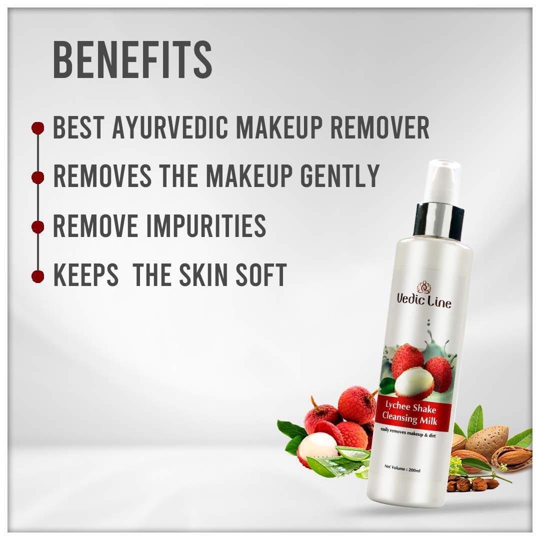 - Vedicline Lychee Shake Cleansing Milk is a gentle and creamy cleanser that effectively reduces impurities from the skin & without disturbing your skin ph levels or drying it off.