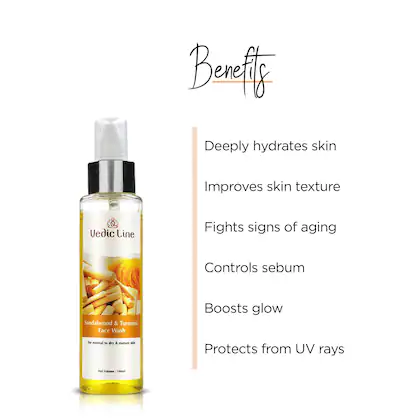 - Apply the face wash: Squeeze a small amount of the Vedicline Sandal & Turmeric Face Wash onto your palm.
